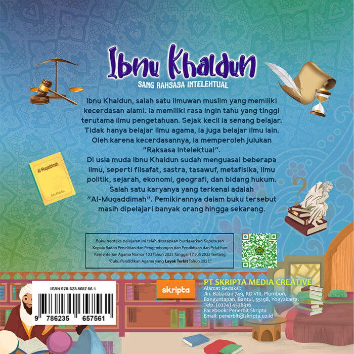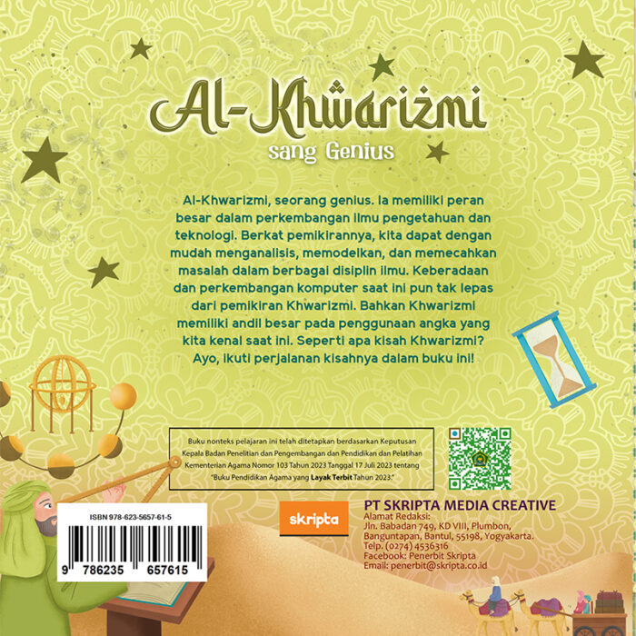 Ibu dari al-Jahiz pernah memberinya setumpuk kertas dan mengatakan, “kau kelak akan mendapatkan rezeki dari menulis.” Al-Jahiz berhasil menjadi penulis hebat dengan karyanya yang terkenal, kitab al-Hayawan. Kitab ini berisi catatan berbagai macam hewan dan ciri khasnya. Kitab al-Hayawan banyak dibaca oleh para ahli biologi sampai saat ini. Ayo, kita simak perjalanan hidup al-Jahiz di buku ini!